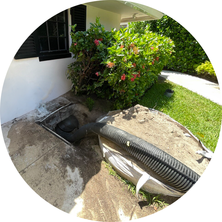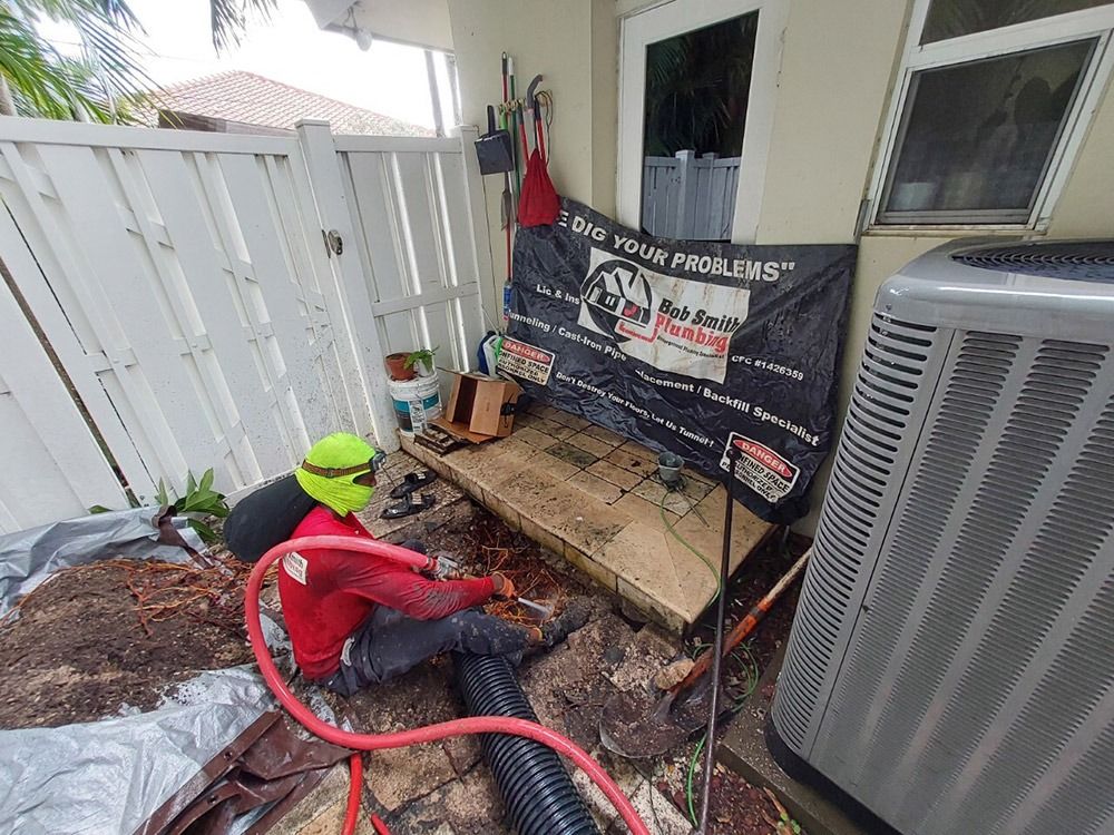 The first phase in replacing your customer's cast iron pipelines involves tunneling. Unlike intrusive methods that destroy their floors, we excavate from the outside to safeguard their home's interior and slab integrity.